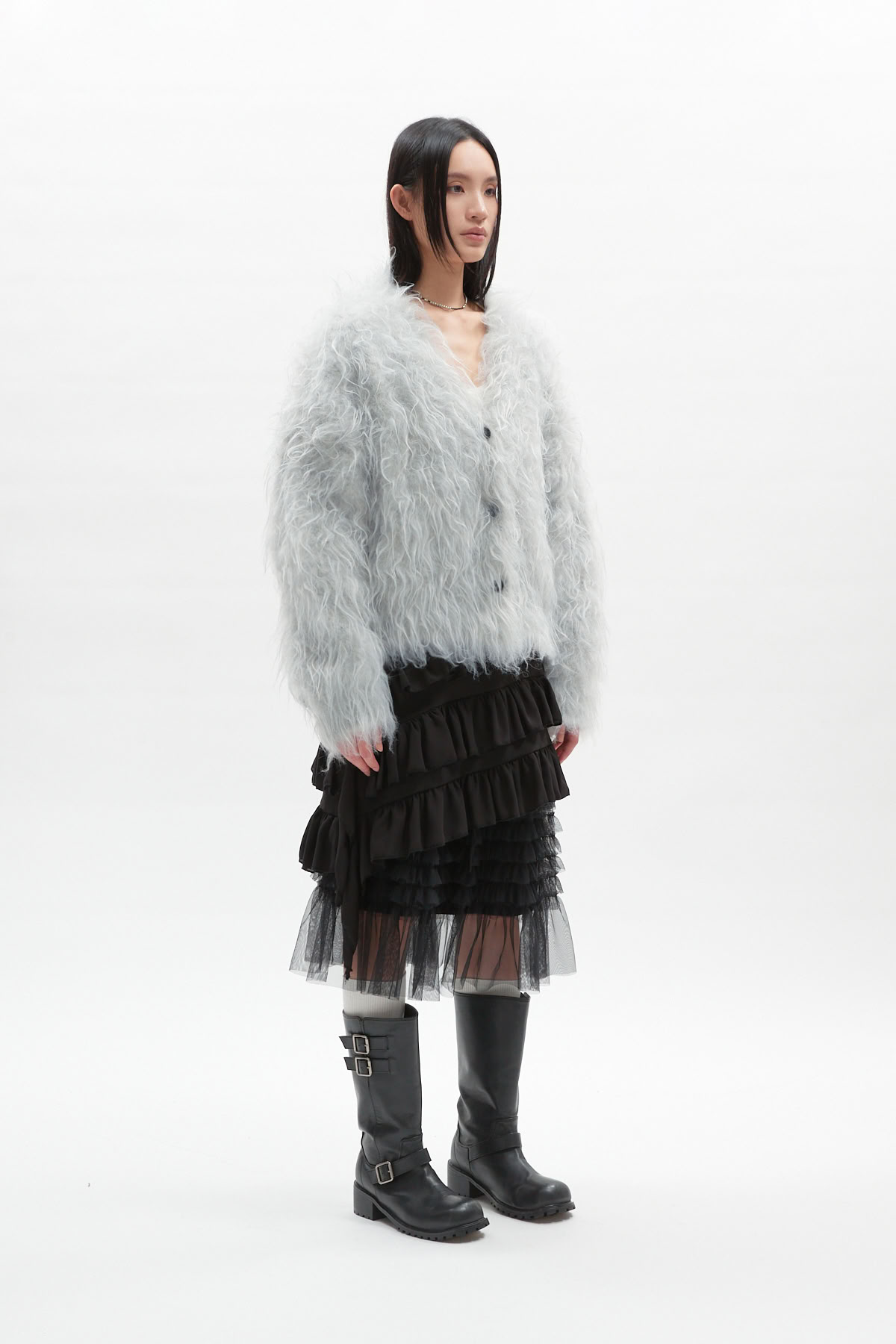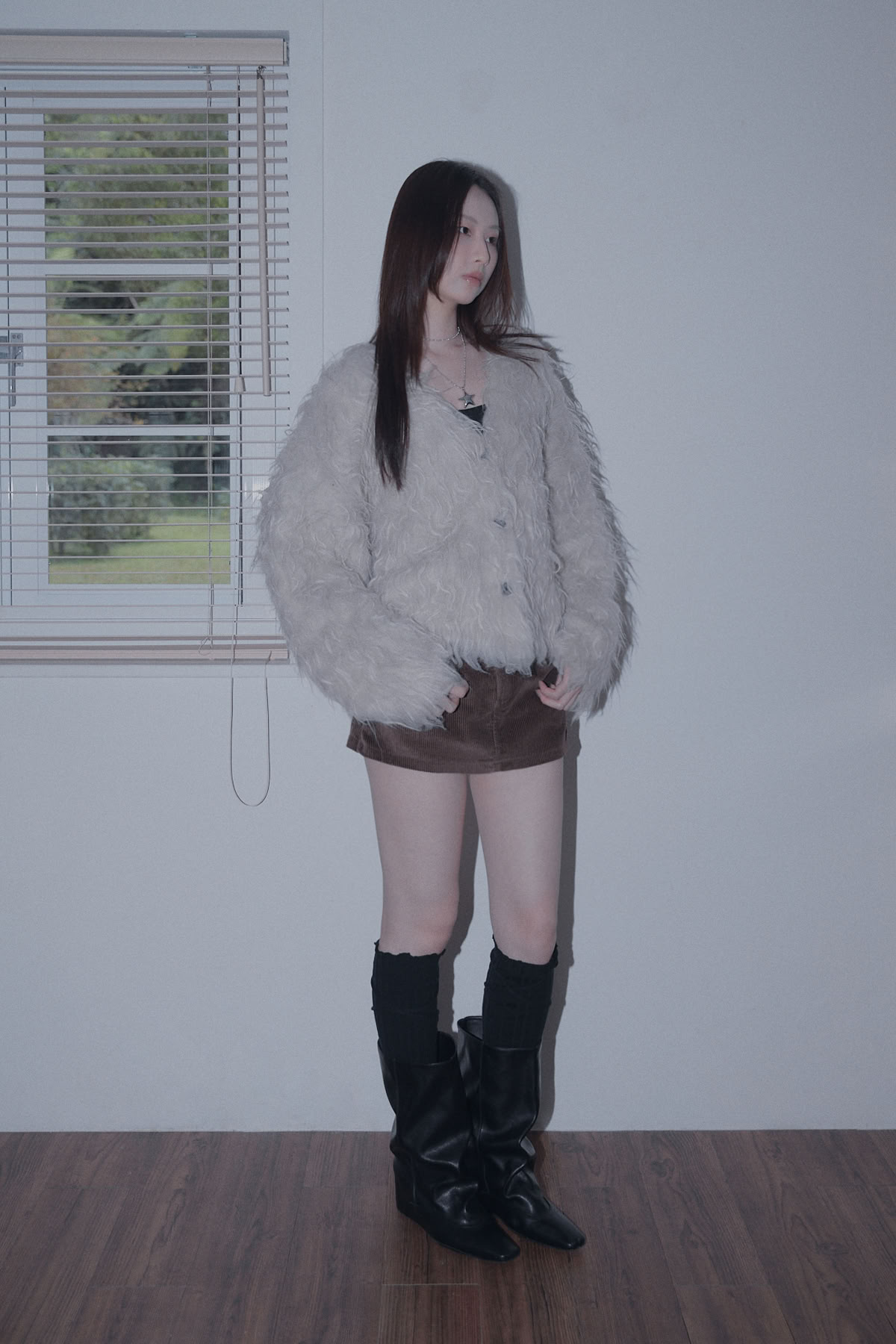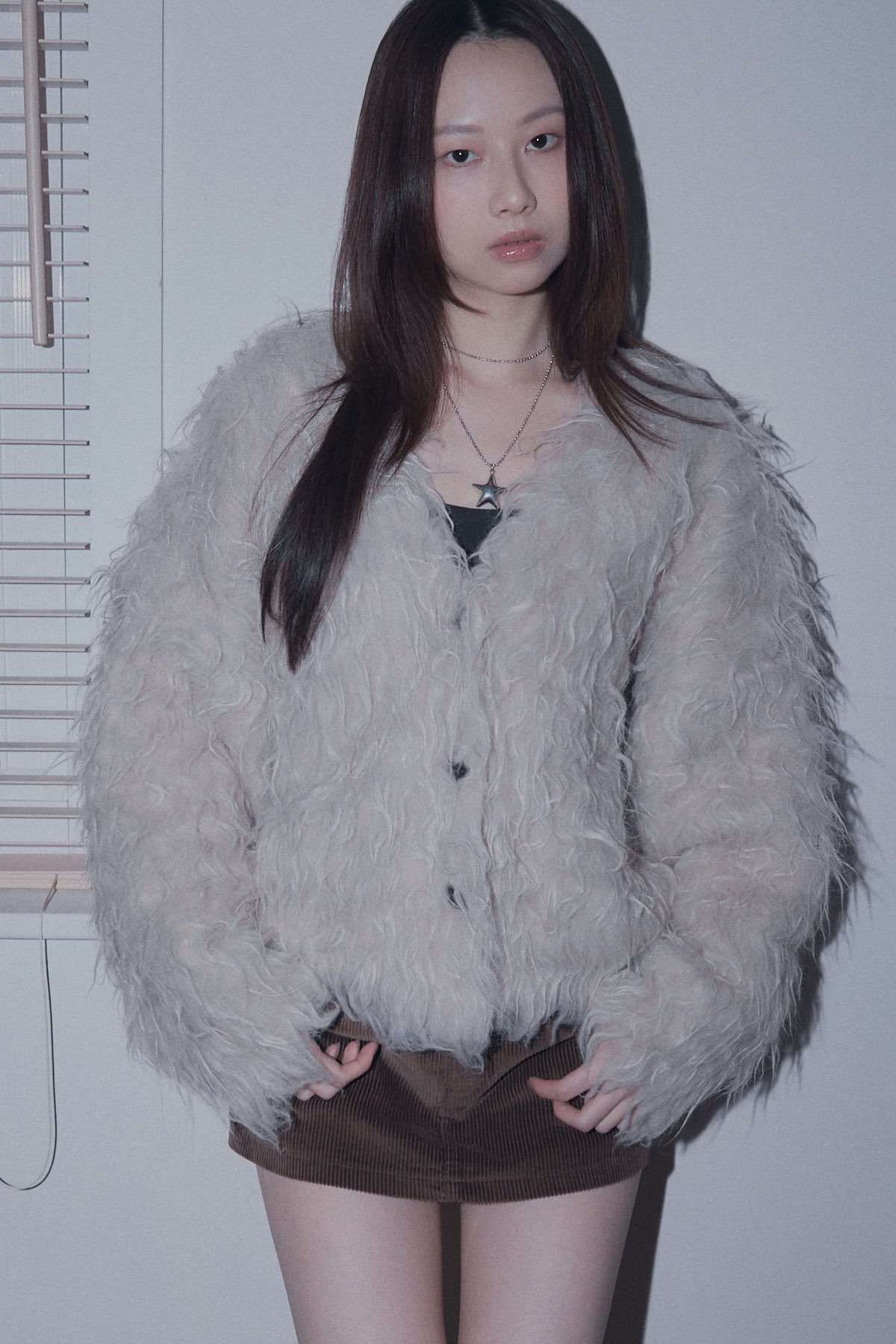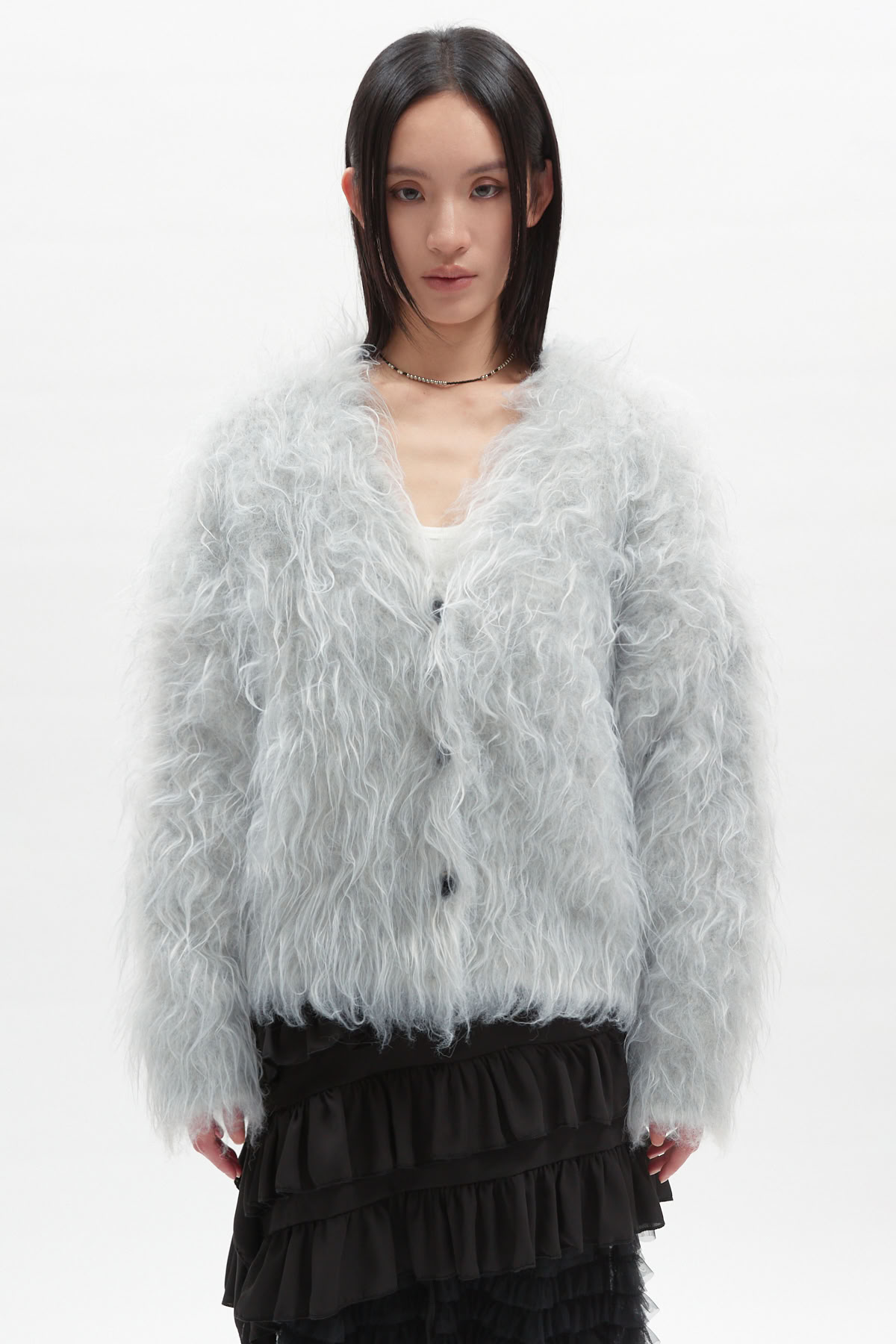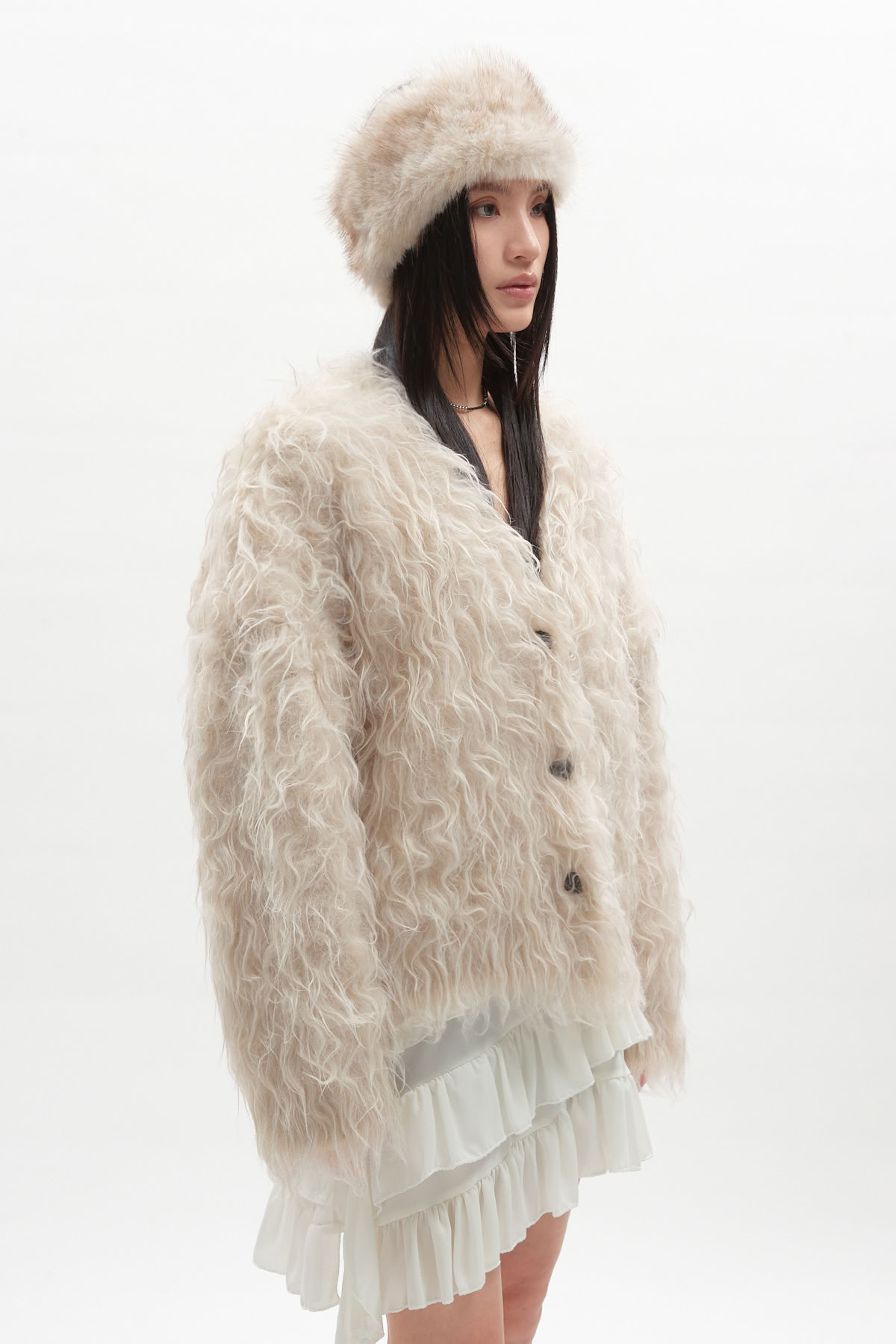 絨毛排釦針織外套