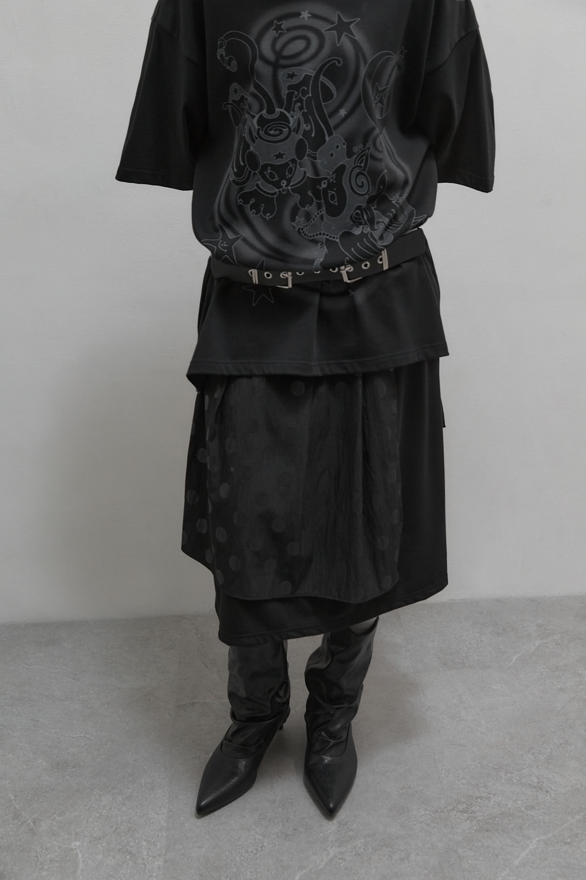 點點百褶片裙假兩件棉質過膝裙