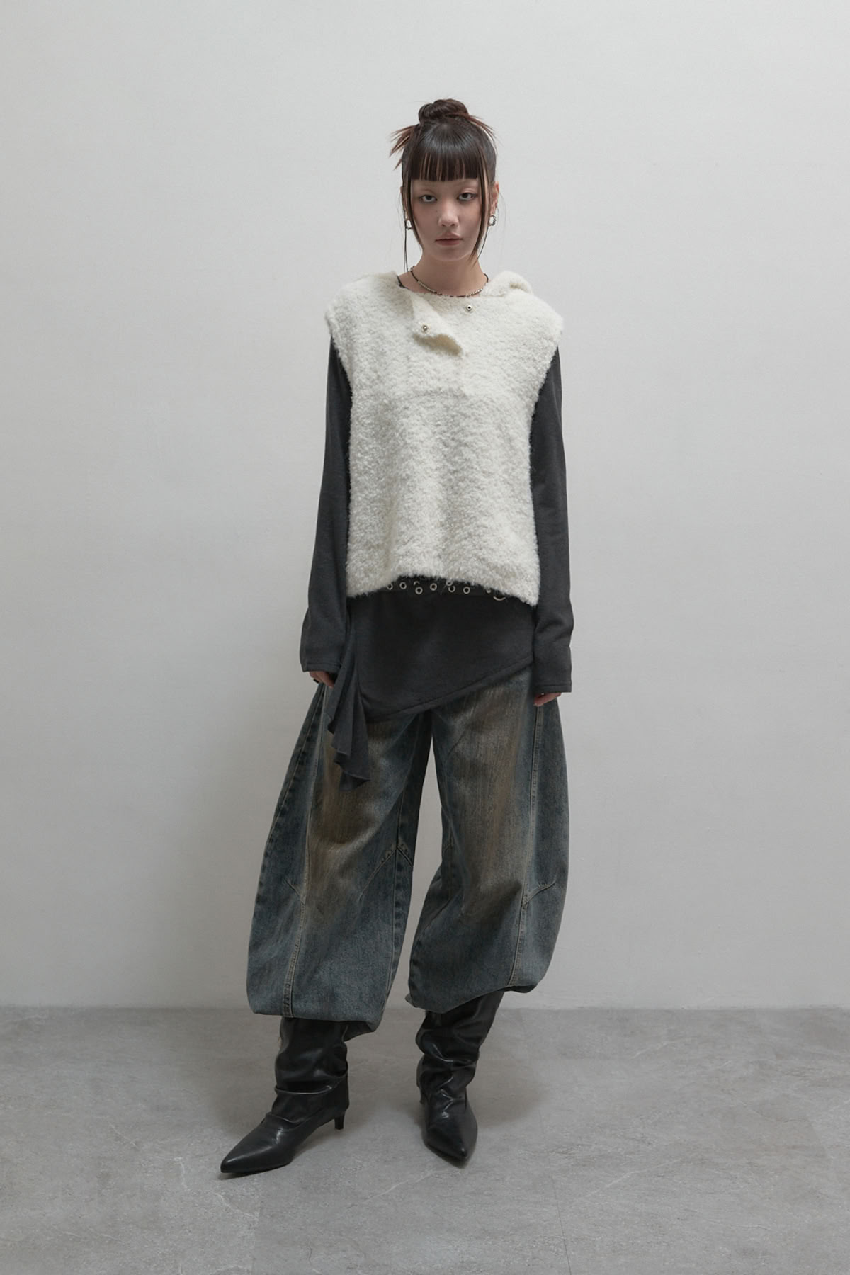 卷邊抓褶長袖上衣